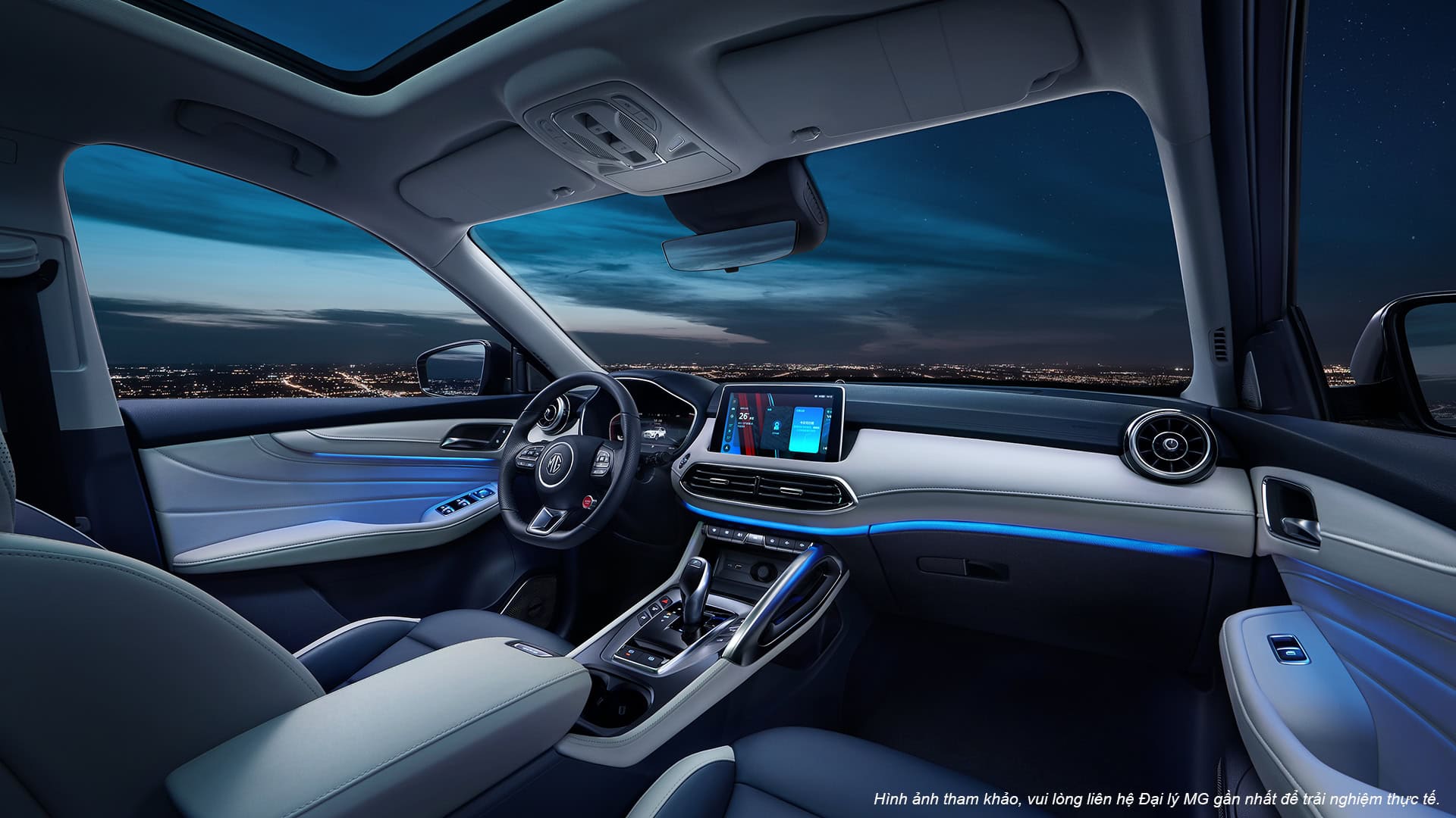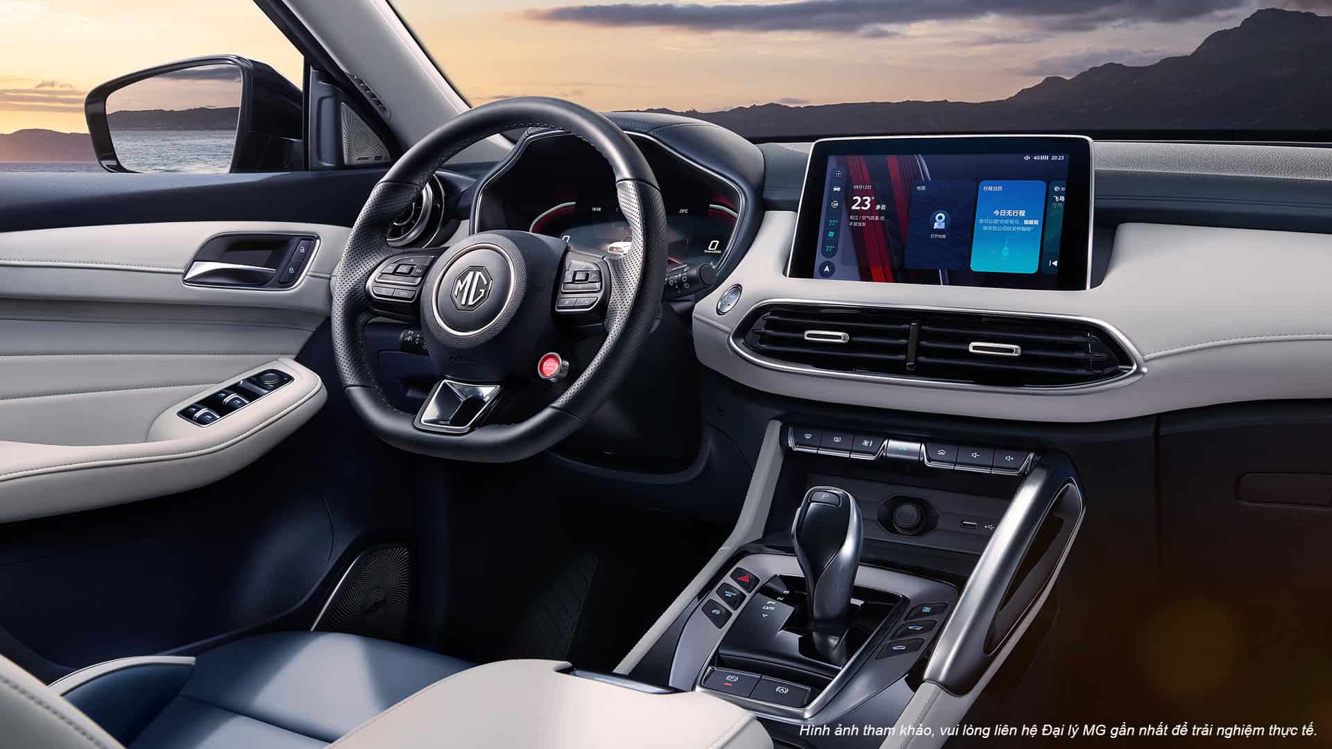 Nội thất MG HS được thiết kế tối giản nhưng sang trọng, sử dụng chất liệu da và nhựa mềm cao cấp. Vô lăng D-Cut thể thao bọc da, màn hình giải trí dạng cảm ứng 10.1 inch đặt ngang tích hợp Apple CarPlay & Android Auto, cùng điều khiển giọng nói thông minh.